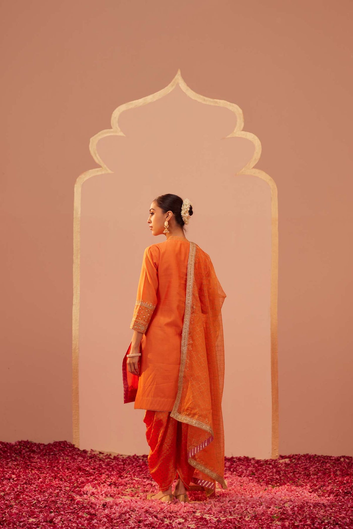 Composition - KURTA - SILK CHANDERI; DHOTI - BAMBERG SATIN; DUPATTA - SILK ORGANZA