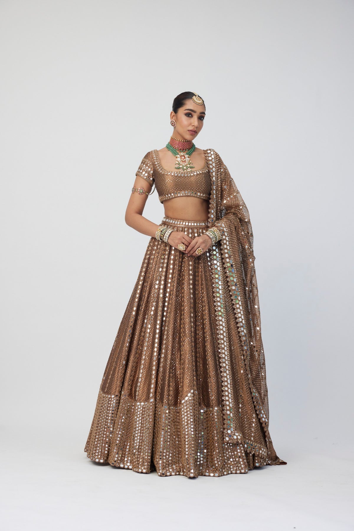 Copper Shimmer Organza Lehenga And Dupatta Clubbled With Real Hand Cut Mirror Embroidered Blouse