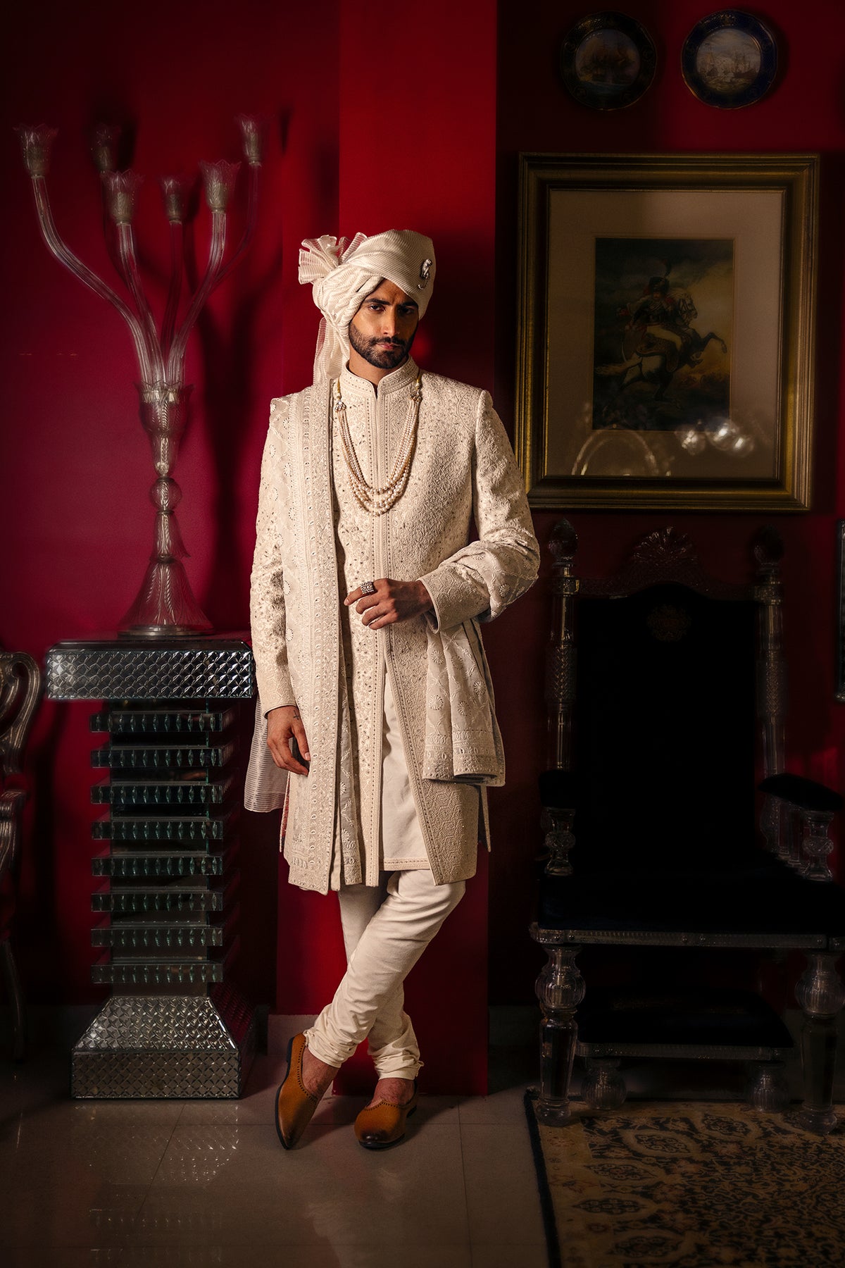 Note : Sherwani is for inr 180000,Dupatta is for 125000 Safa is for 7000, and Jooti is for 20000