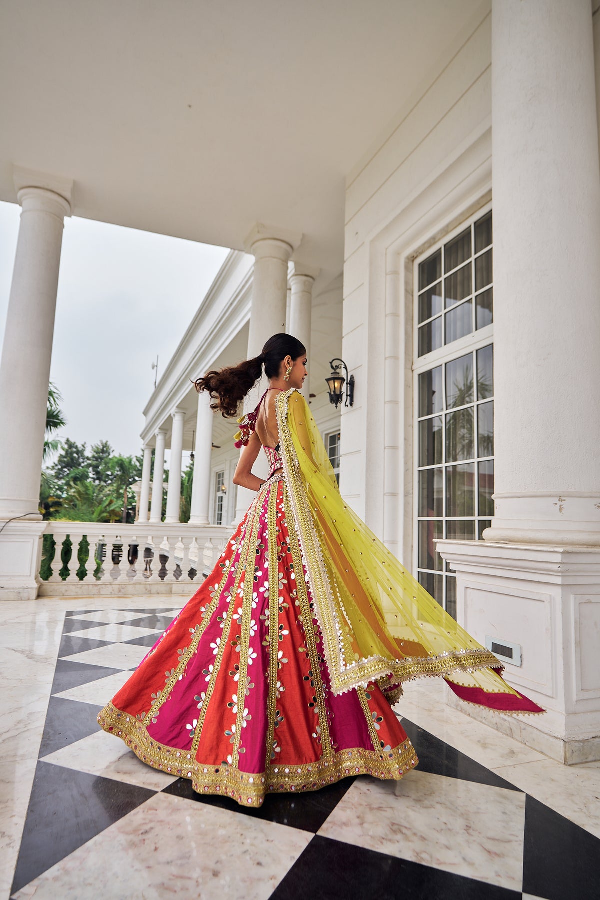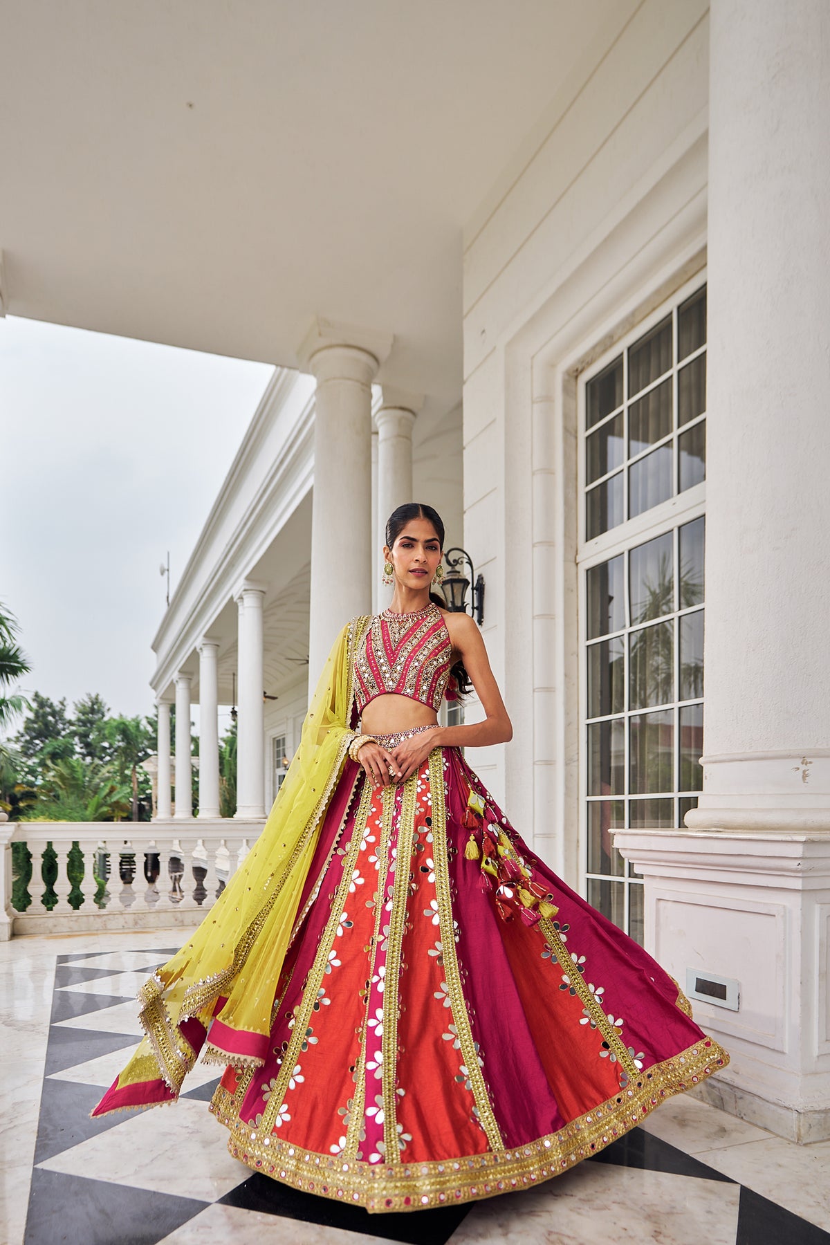 This gorgeous multicolor Lehenga in silk have beautiful embroidery on it. Mirror and lace have well defined the design of lehenga. The blouse is fully embroided with beautiful tassels at the back. The lehenga has finished with the heavy beautiful lace detailing net duppatta.