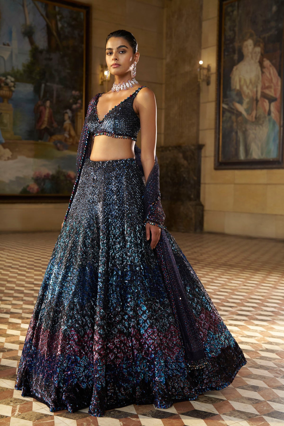 Multi - Coloured Sequin Lehenga Set