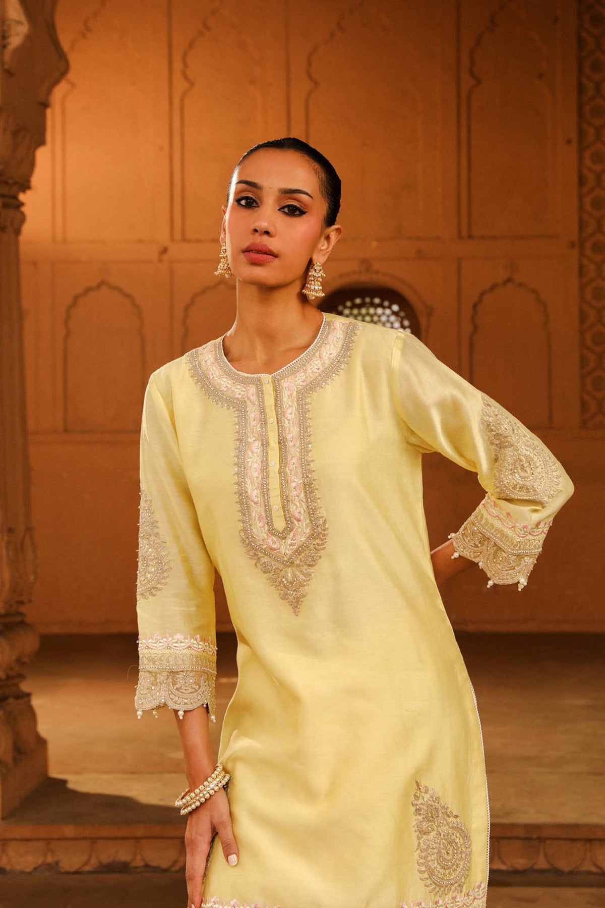 Composition - Kurta - Silk Chanderi; Bottom - Satin Silk
