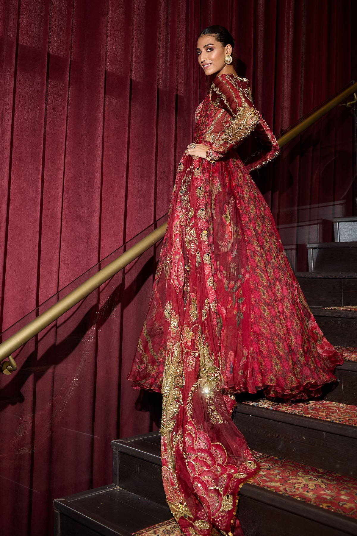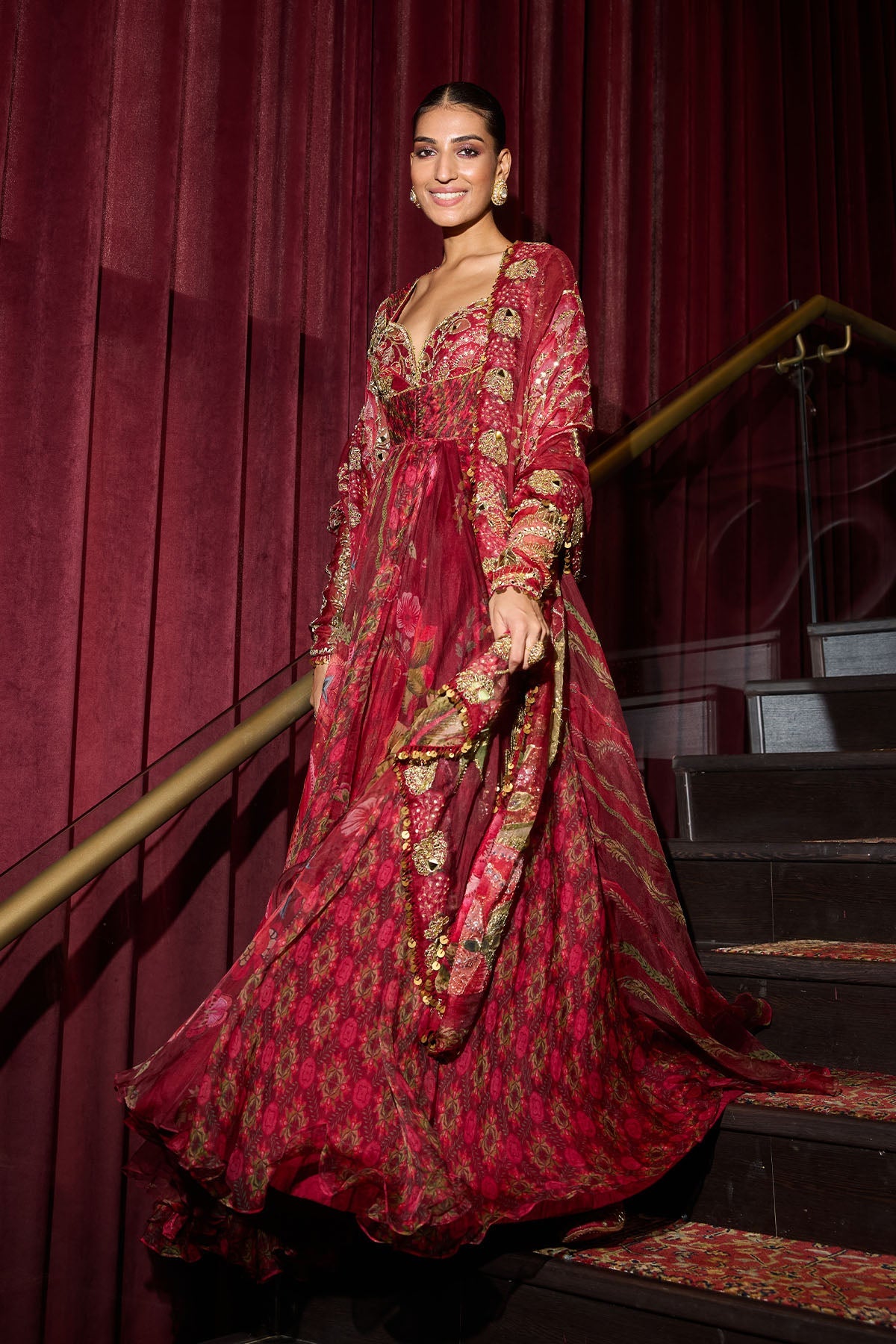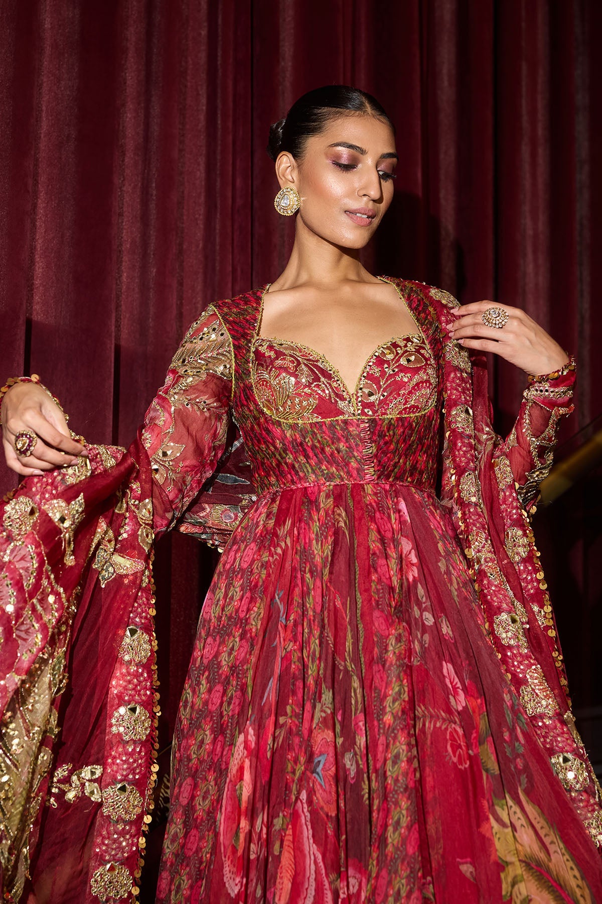 Hand embroidered Anarkali with heavy odhani