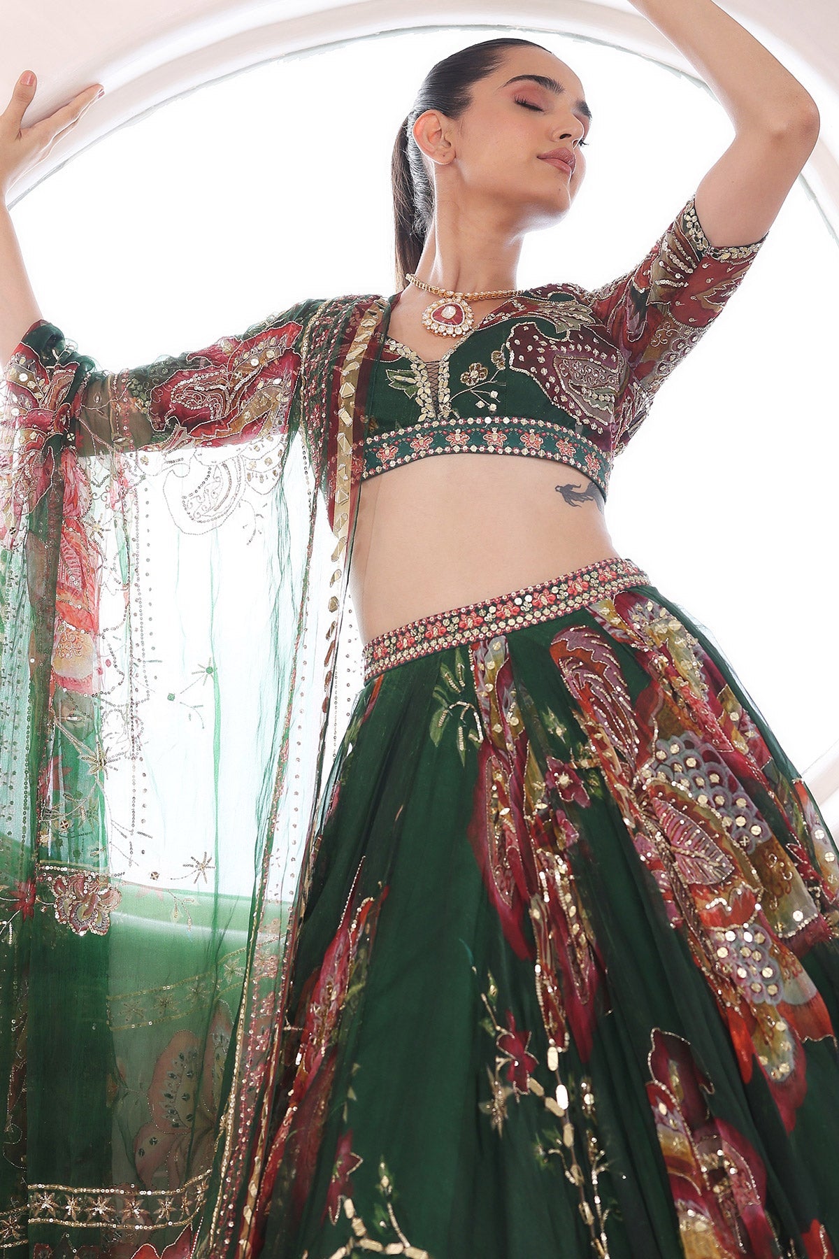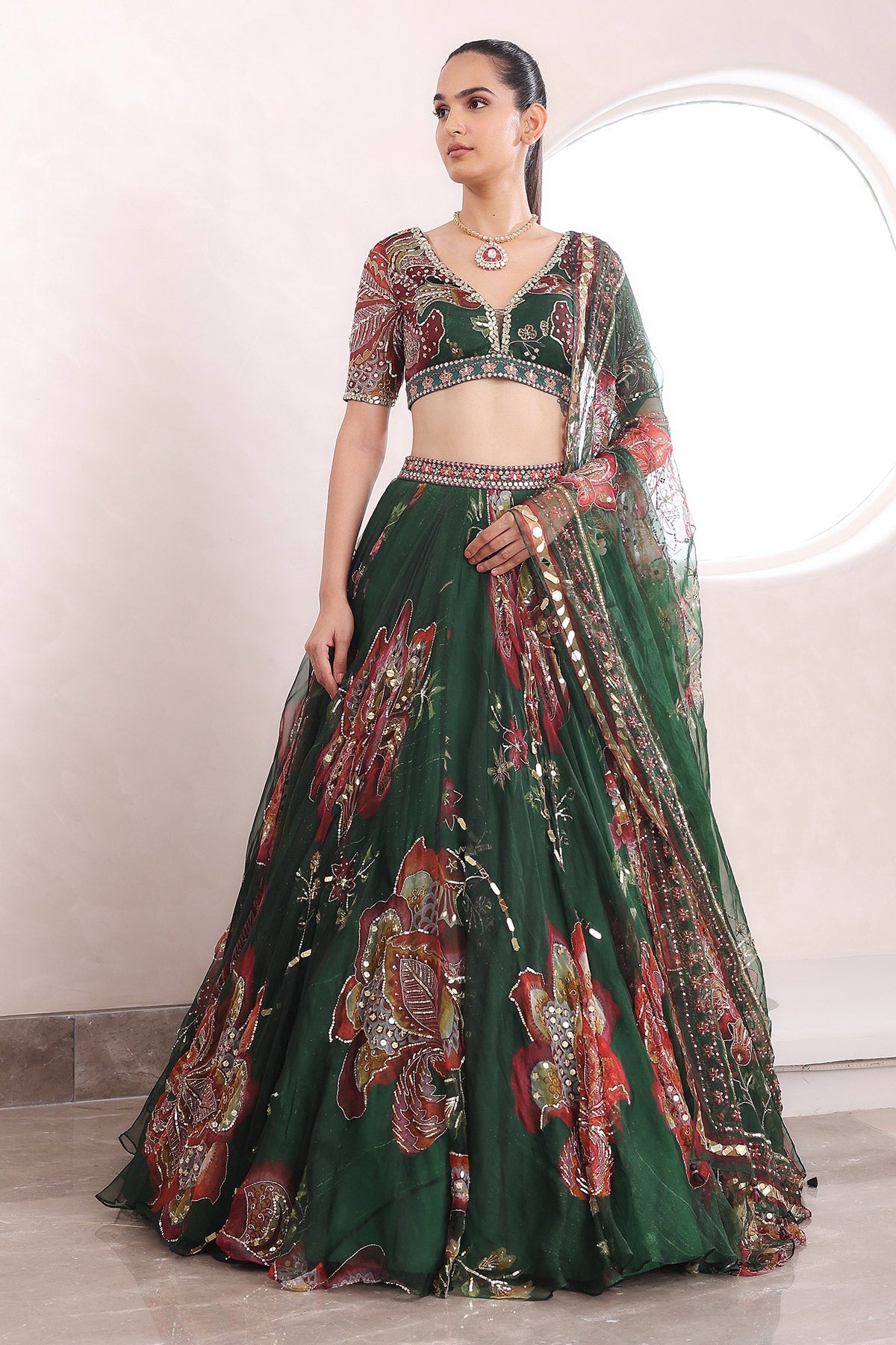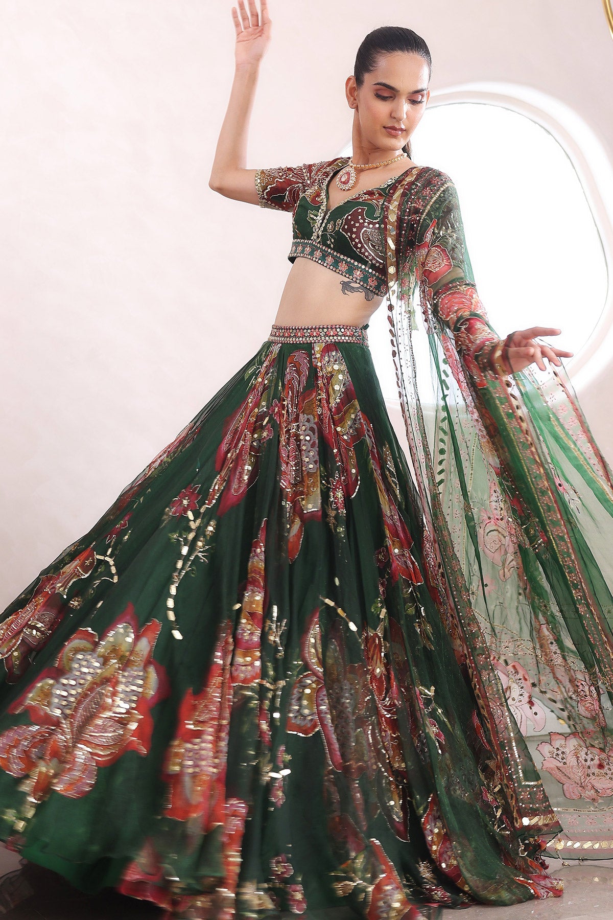 EMBROIDERED BLOUSE WITH HEAVILY EMBROIDERED LEHENGA AND DUPATTA