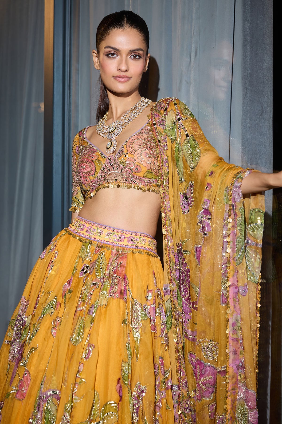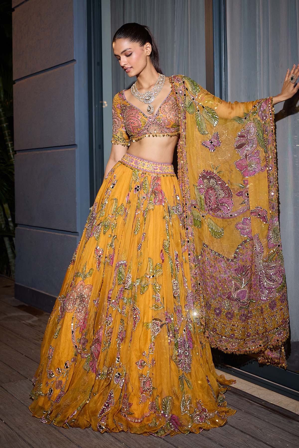 Heavy hand embroidered lehenga blouse and heavy odhani
