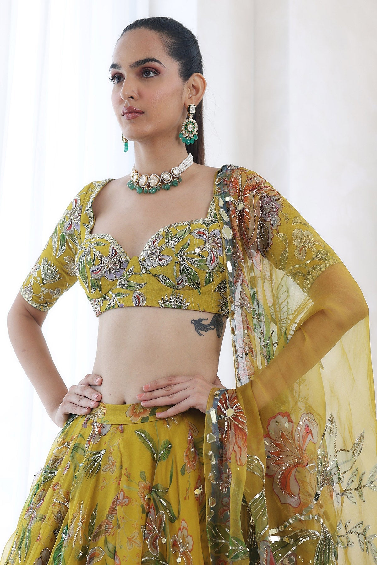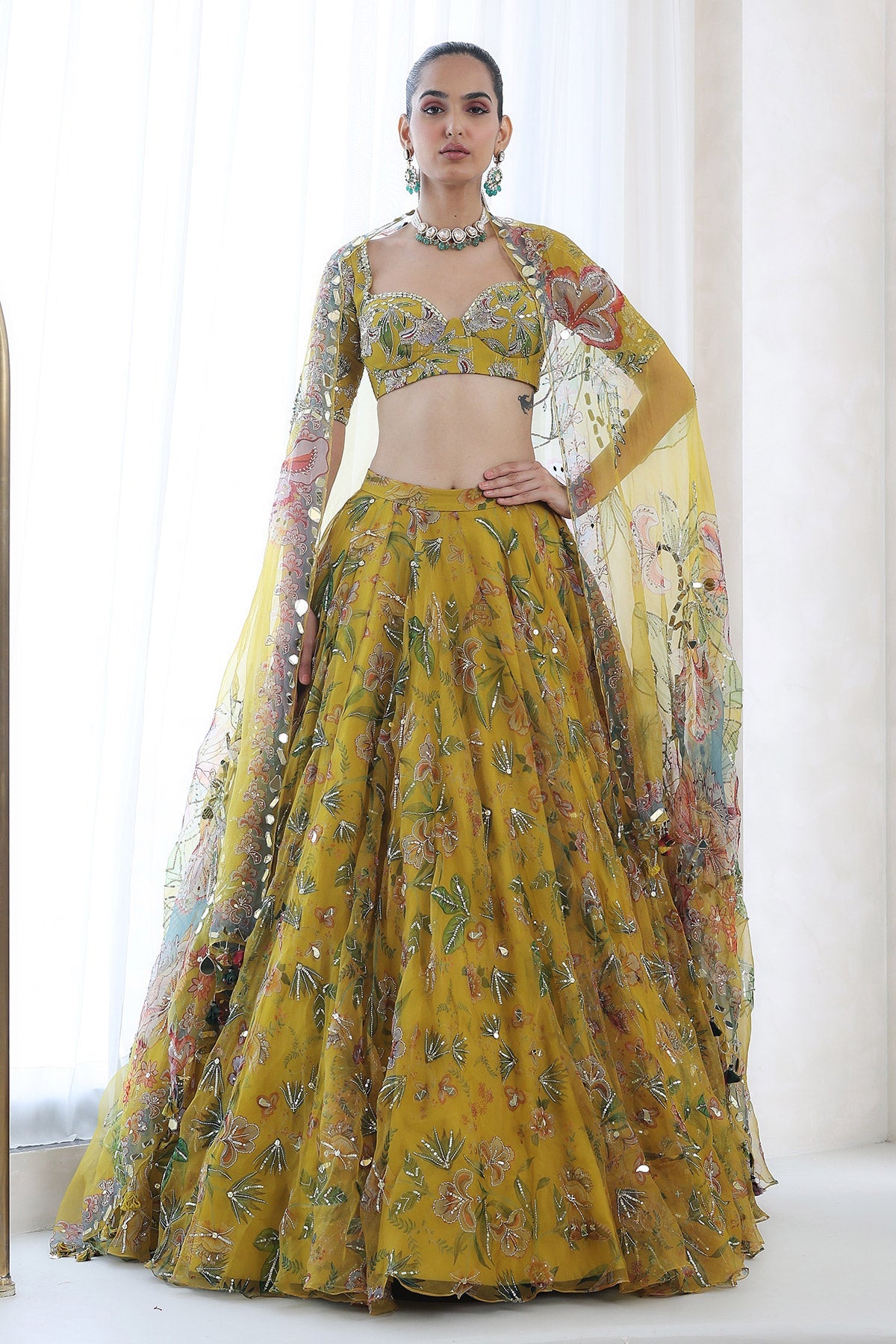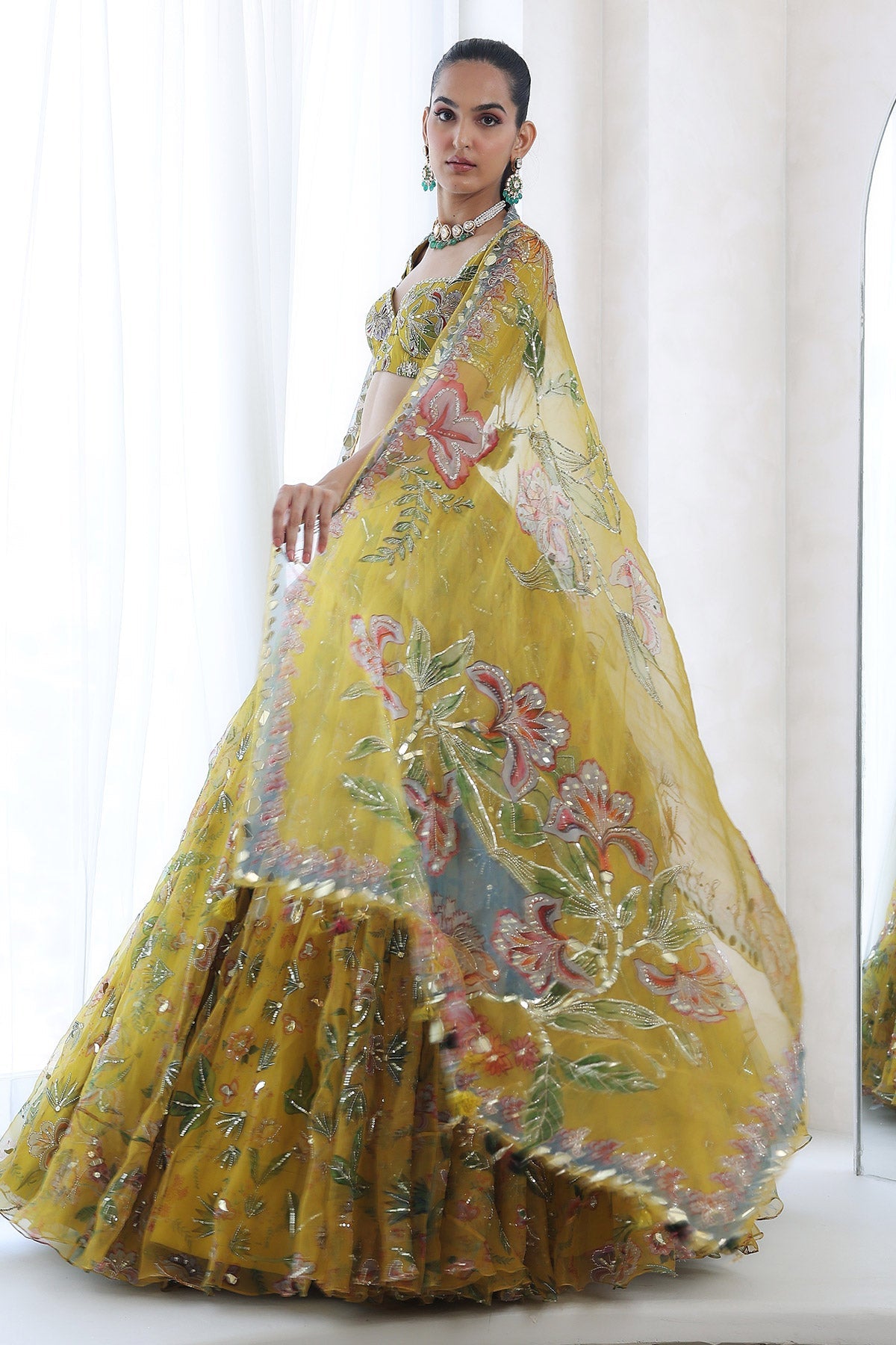 EMBROIDERED BLOUSE WITH HEAVILY EMBROIDERED LEHENGA AND DUPATTA