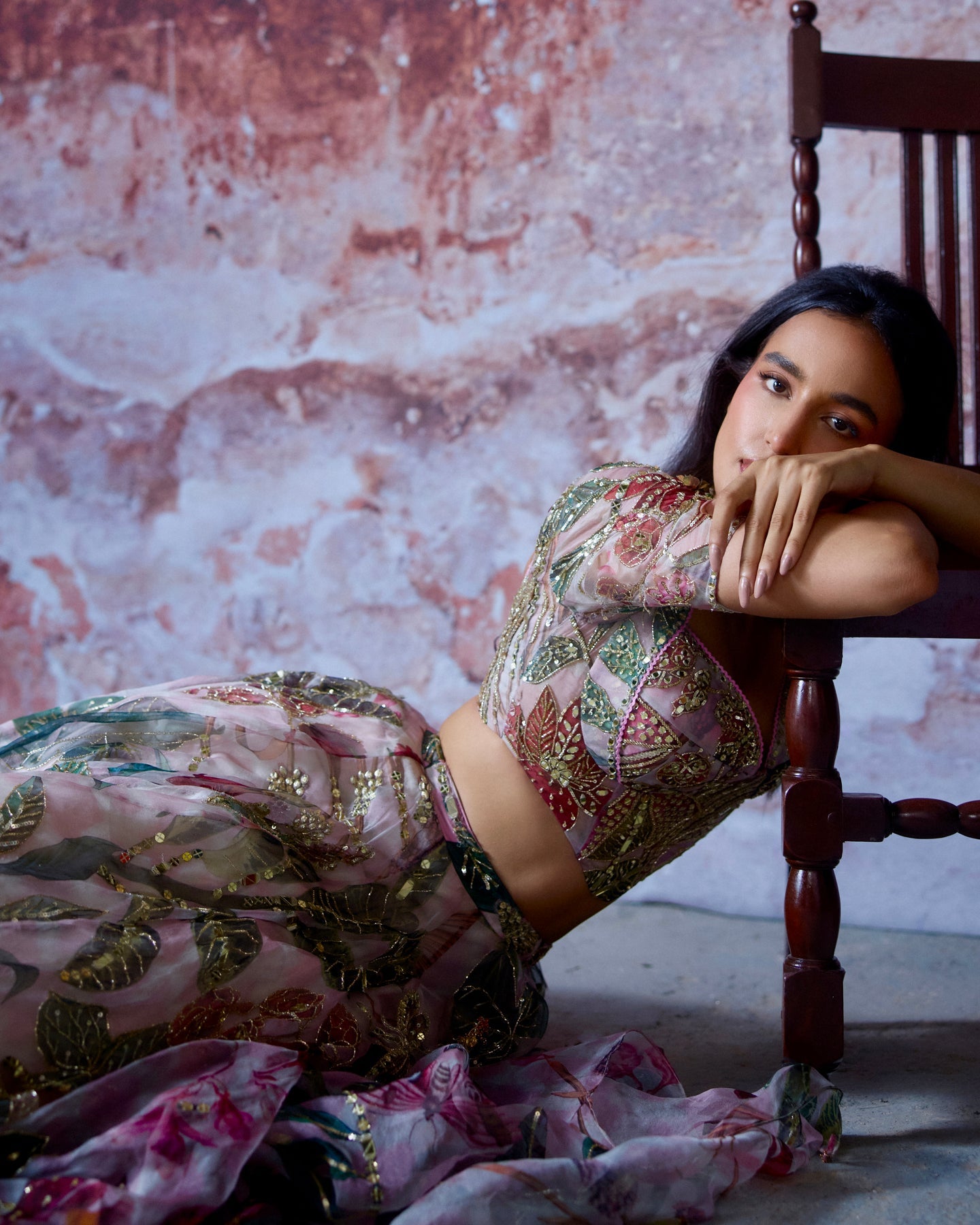 EMBROIDERED LEHENGA WITH EMBROIDED CORSET BLOUSE WITH DHUPATTA