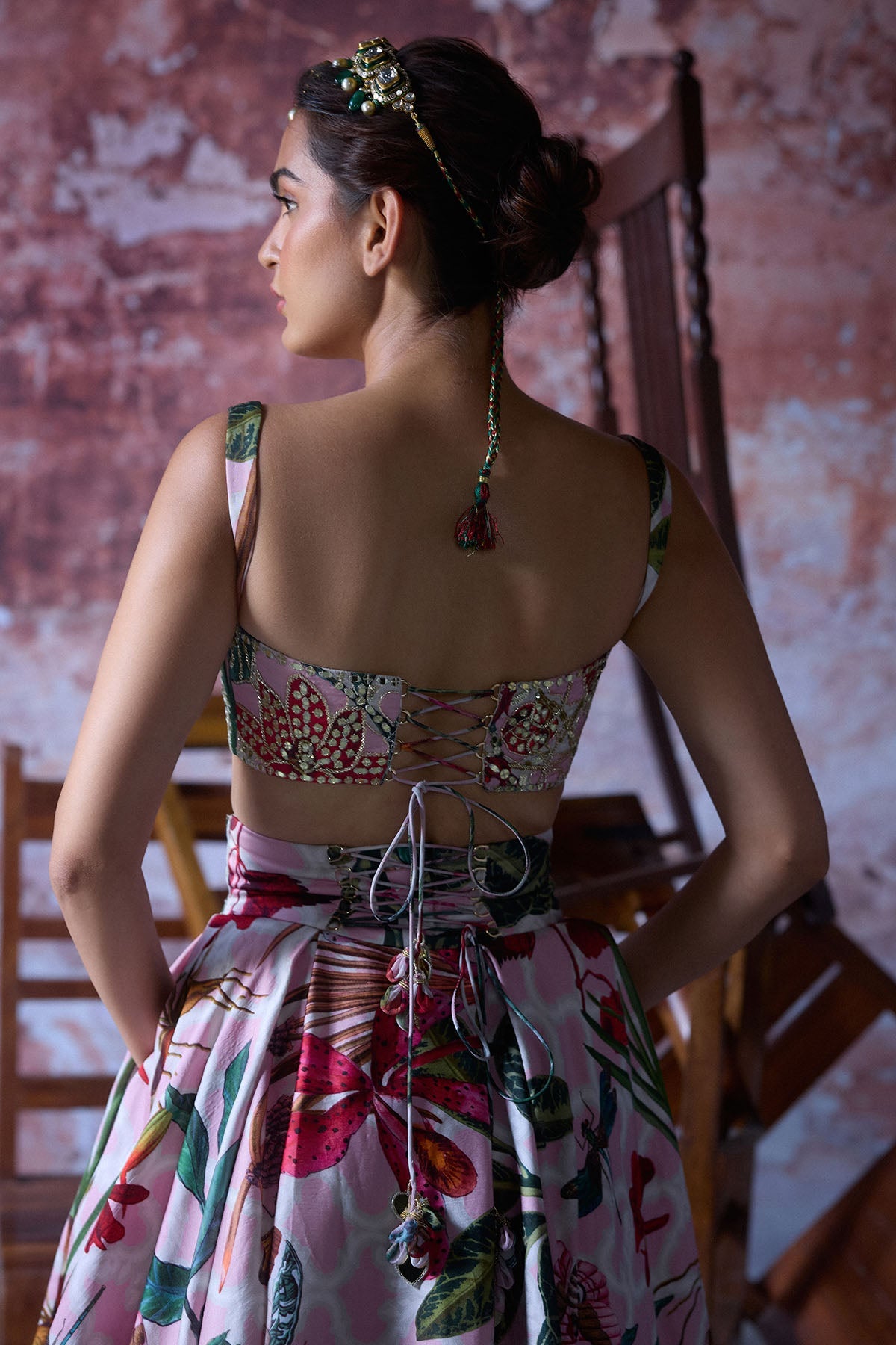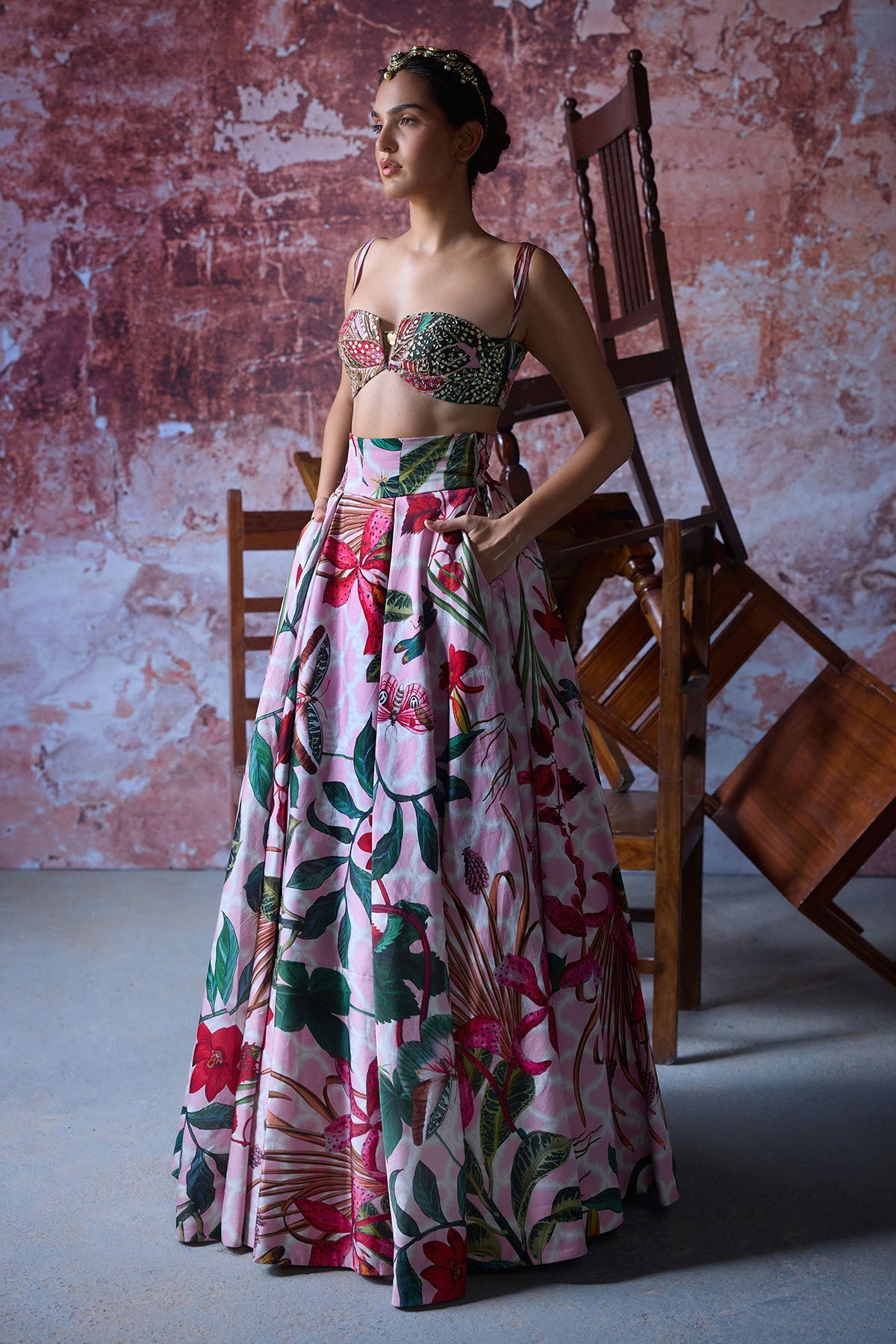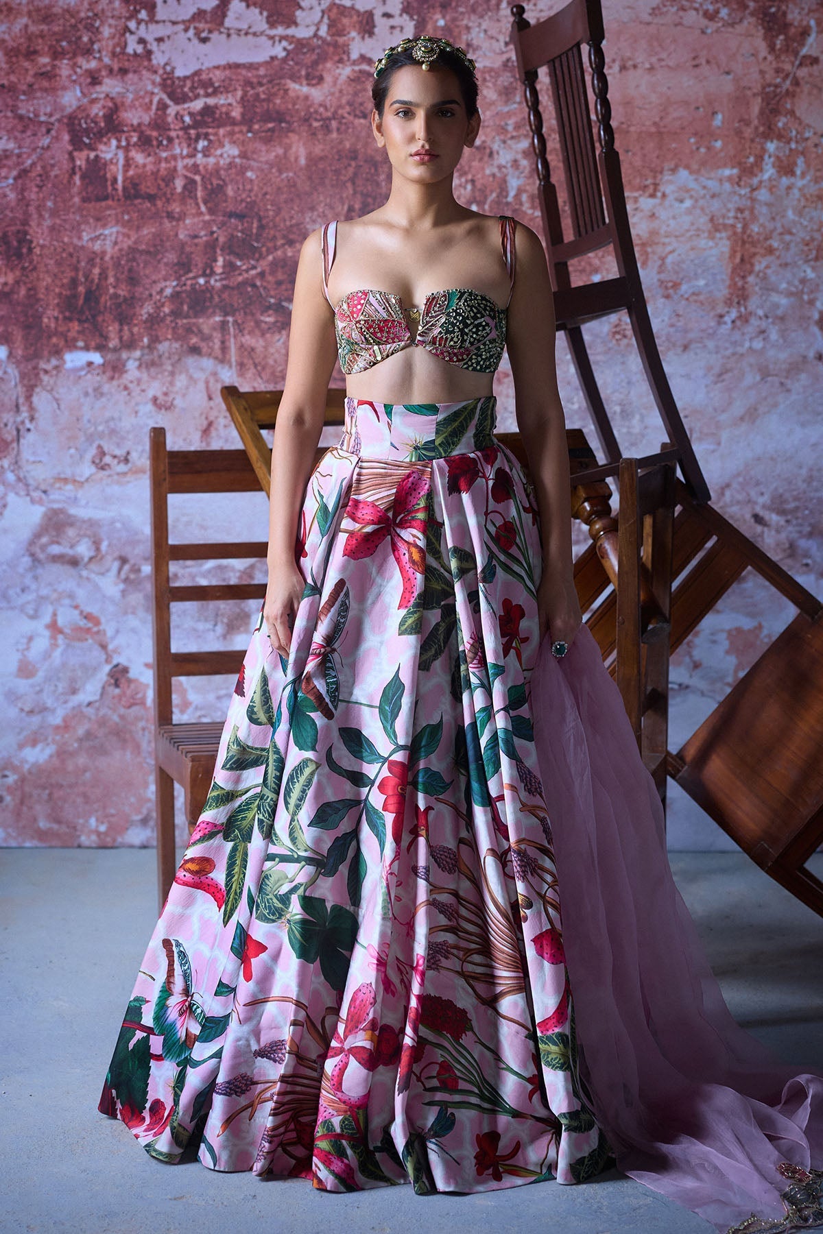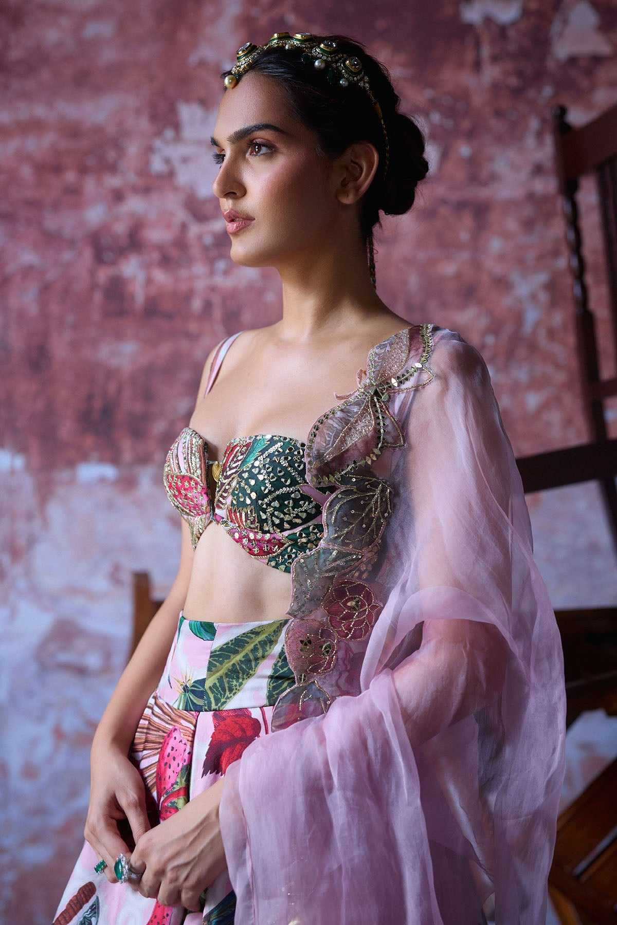 PRINTED LEHENGA WITH EMBROIDERED BLOUSE AND DHUPATTA