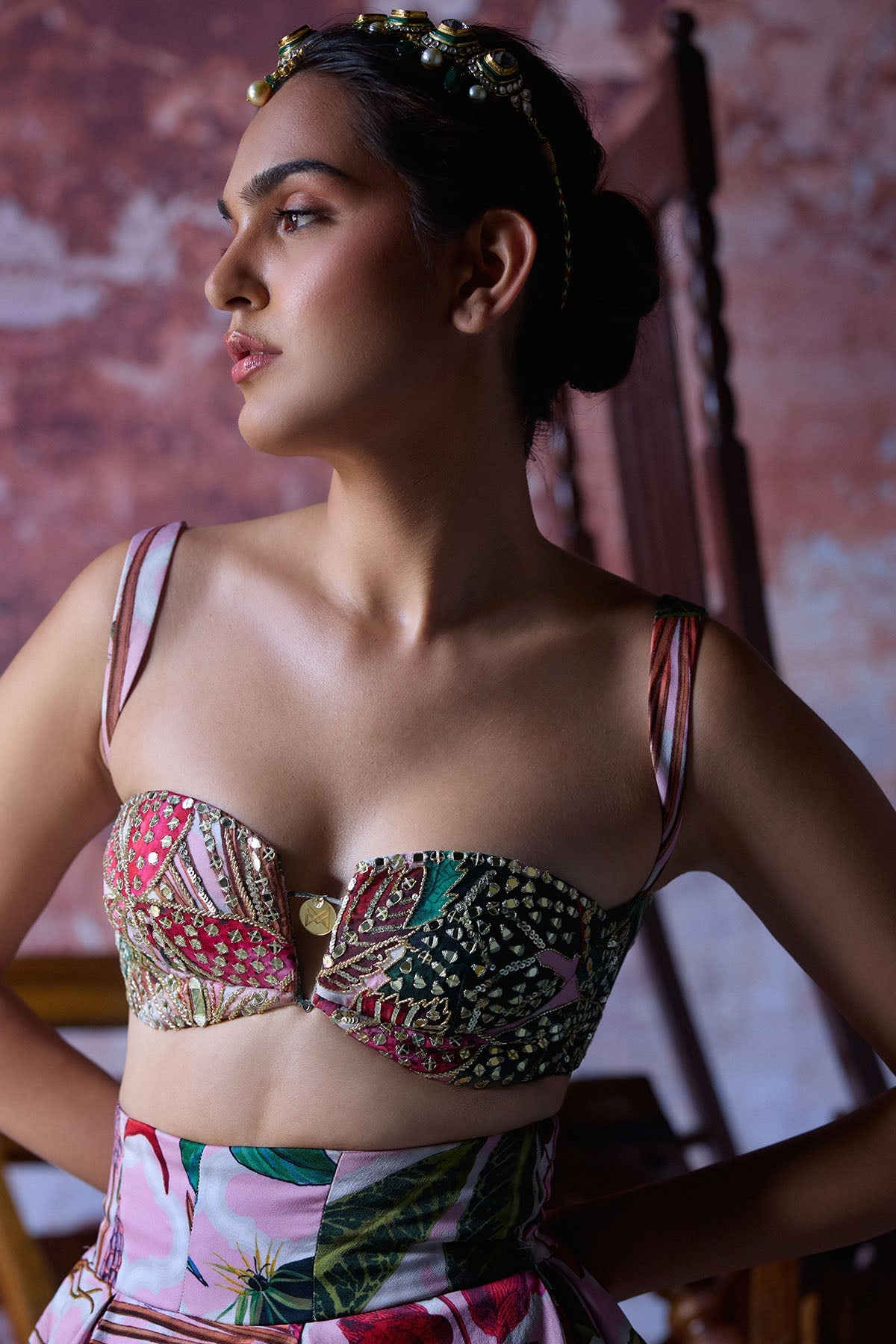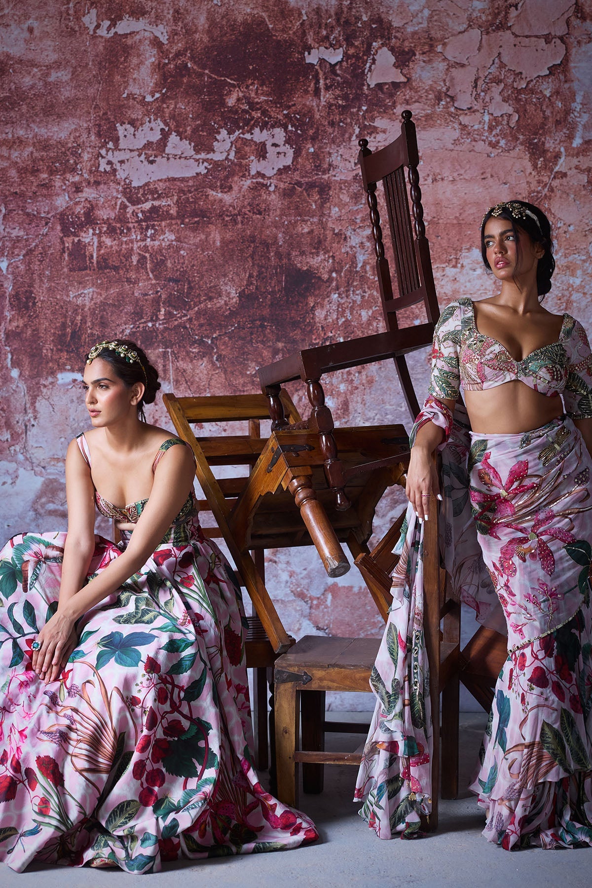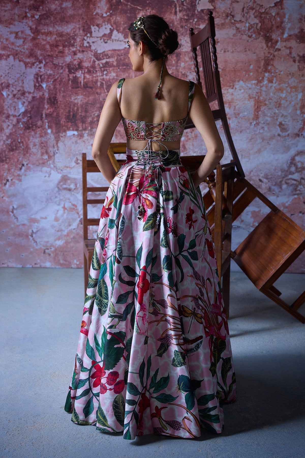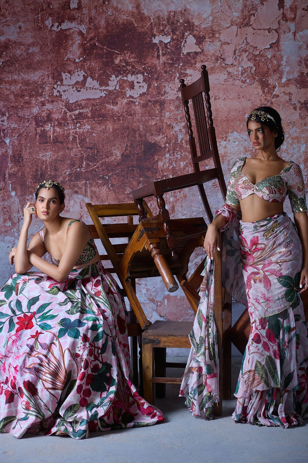 PRINTED LEHENGA WITH EMBROIDERED BLOUSE AND DHUPATTA