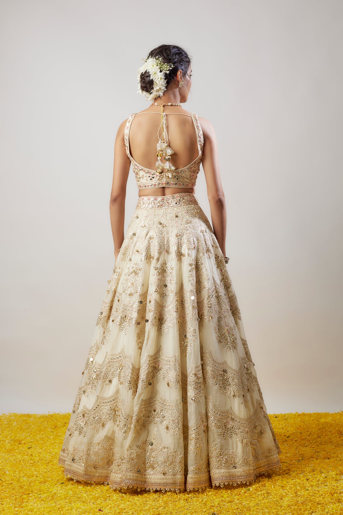 Embrace elegance with our stunning lehenga set, featuring a beautifully crafted sleeveless blouse that showcases intricate embellishments. The flowing lehenga, adorned with exquisite patterns, drapes gracefully, making it perfect for any festive occasion. Elevate your style and celebrate tradition with a contemporary twist!