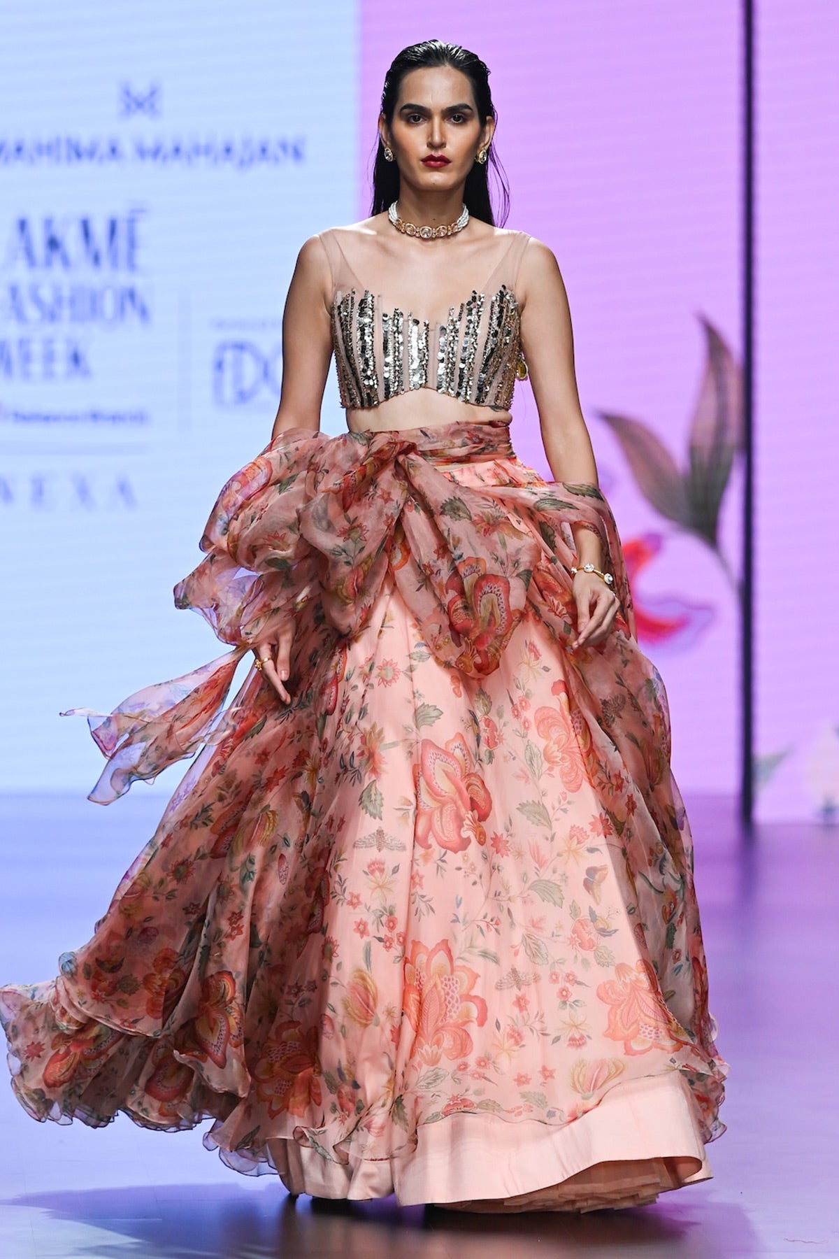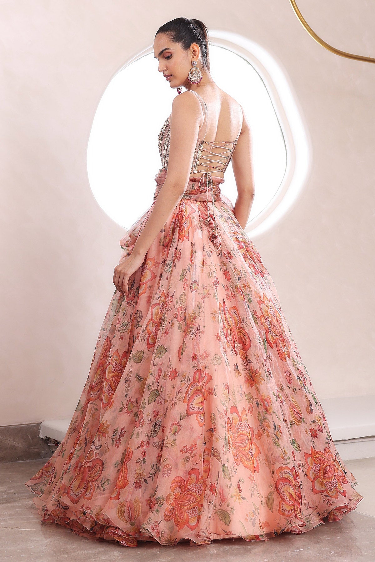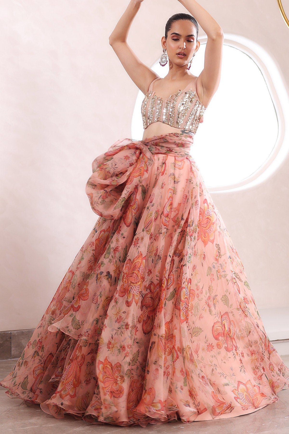 EMBROIDERED BLOUSE WITH PRINTED BOW LEHENGA