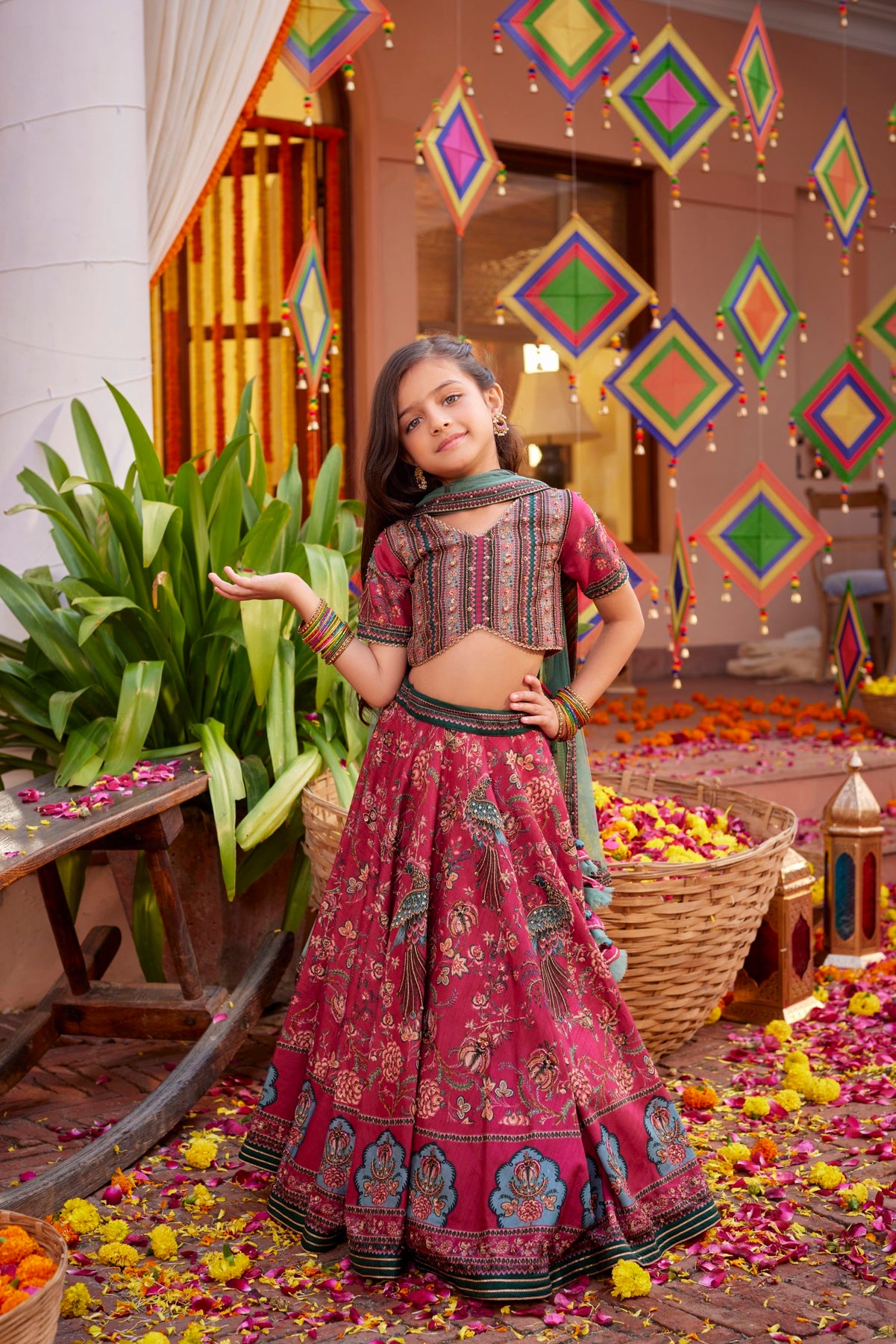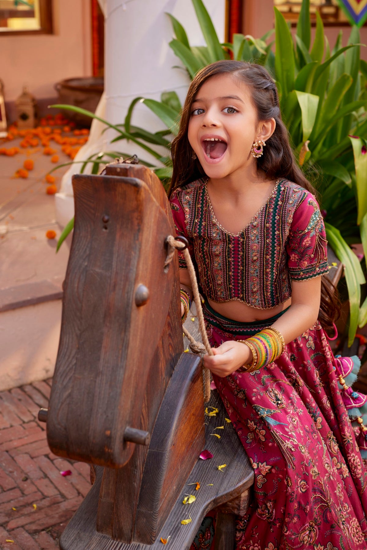 Adorn your princess with this Aamya lehenga set . Blouse and the skirt With Beads And Sequins. It Is Paired with a Co-Ordinated Dupatta.Perfect for Glamorous Mehendi, Sangeet Look and other wedding ocassions.