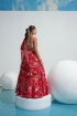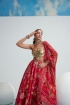 Embroidered textured cotton lehenga, golden embroidered blouse and embroidered organza dupatta with tassels hem detaling set