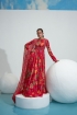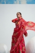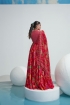 Red satin organza embroidered anarkali and organza embroidered dupatta with hem tassel detaling set