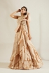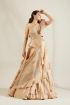 Golden leaf peplum one shoulder top with placement embroidery comes wwith an organza ruffle skirt showinh the golden tints of transparancy and an attached dupatta