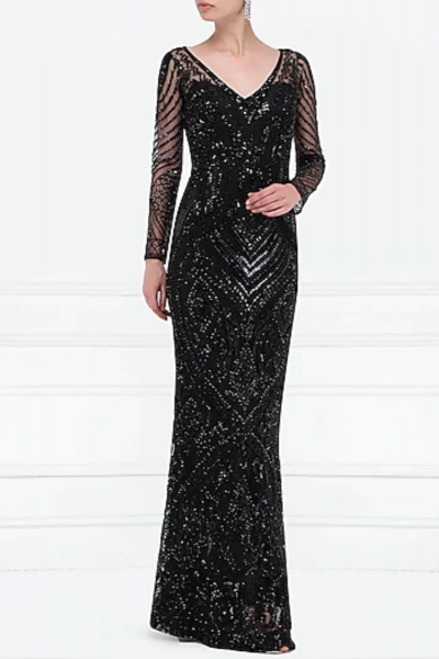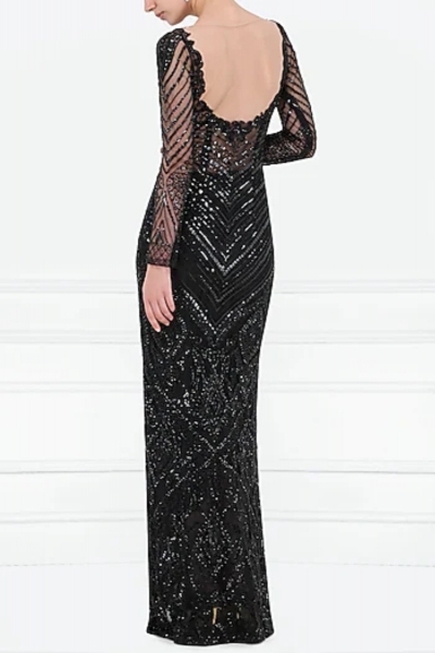 Featuring a black gown in net base with hand embroidery in an abstract pattern all over.